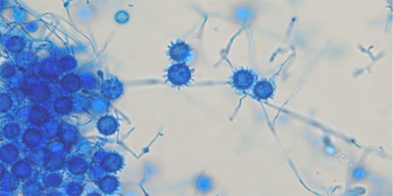 حین بررسی میکروسکوپی لام رنگ آمیزی شده با استفاده از تکنیک لاکتوفنل کاتن بلو، اسپورهای قارچی، هیفها و اجسام بارده به رنگ آبی تیره و زمینه آنها آبی روشن خواهد بود.